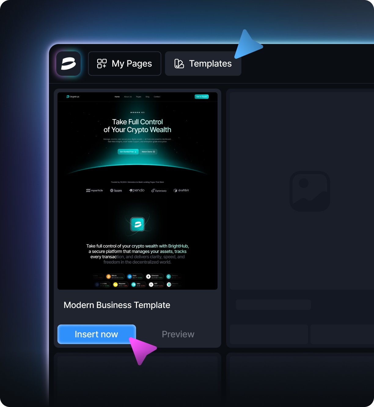 - 01 Choose a Template or Start from Scratch Save time with 100+ high-converting templates or design a custom page for your brand—perfect for sales, signups, and launches.